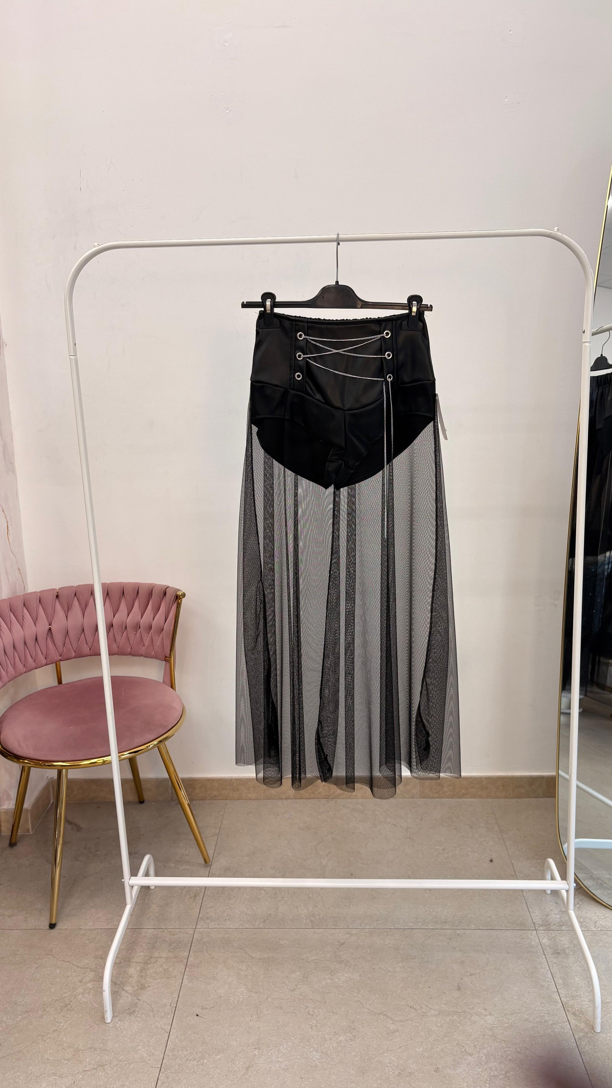 - Dettagli: Pantaloncini effetto gonna, Stringhe frontali